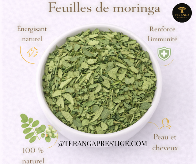 Chez Teranga Prestige, les feuilles de moringa sont sélectionnées avec soin et conditionnées sans additifs ni conservateurs. Cette sélection rigoureuse garantit une qualité constante, une bonne conservation et une utilisation homogène.