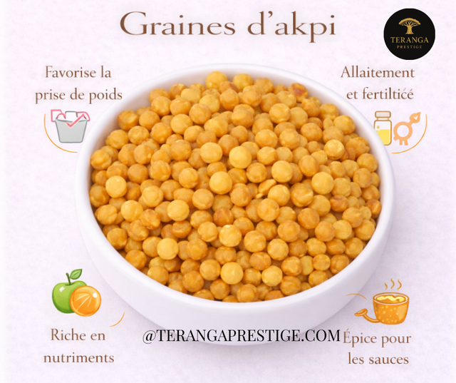 Chez Teranga Prestige, les graines d’akpi sont soigneusement sélectionnées afin de garantir une qualité naturelle optimale, sans additifs ni traitements artificiels. Le séchage est réalisé dans le respect des méthodes traditionnelles pour préserver l’arôme, la saveur et l’authenticité du produit.
