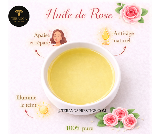 Chez Teranga Prestige, l’huile de rose est sélectionnée avec exigence afin de garantir une huile 100% naturelle, sans additifs ni substances chimiques. Elle est issue de méthodes traditionnelles et conditionnée avec soin pour préserver sa qualité, sa stabilité et son authenticité.