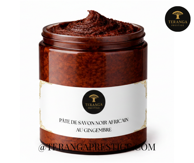 Chez Teranga Prestige, la pâte de savon noir africain au gingembre est sélectionnée Fabriquée selon des méthodes traditionnelles, avec rigueur afin de garantir un produit authentique, sans additifs chimiques ni agents artificiels