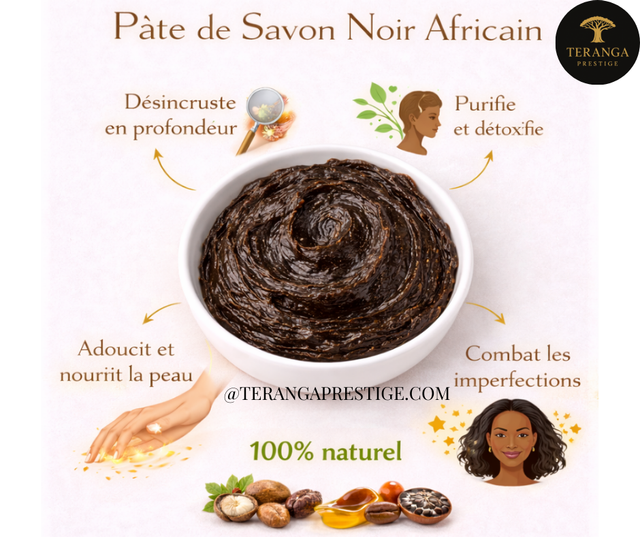 Chez Teranga Prestige, la pâte de savon noir africain est fabriquée avec rigueur afin de garantir un produit authentique, sans additifs chimiques ni agents artificiels. Issue de savoir faire traditionnels, elle conserve toute sa richesse naturelle et s’intègre parfaitement dans les routines de soin.