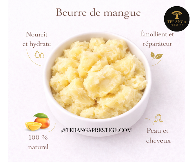 Chez Teranga Prestige, le beurre de mangue est sélectionné avec rigueur afin de garantir un produit 100% naturel, sans substances chimiques. Il est conditionné avec soin pour préserver sa qualité, sa texture et ses propriétés traditionnelles.