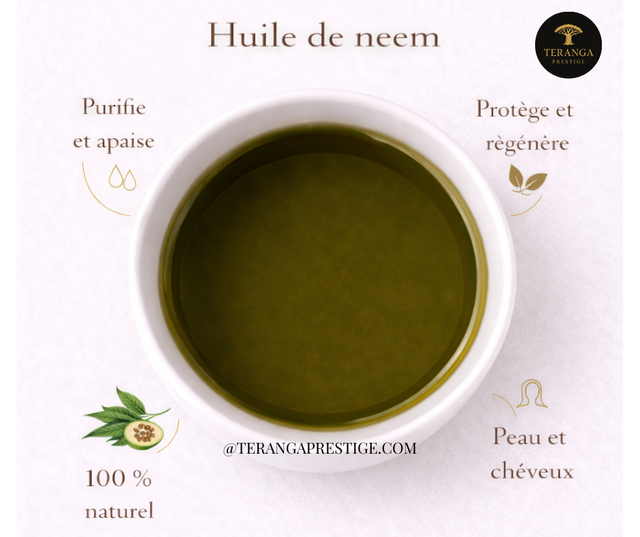 Chez Teranga Prestige, l’huile de neem est sélectionnée avec rigueur afin de garantir une huile 100% naturelle, sans additifs ni substances chimiques. Elle est issue de méthodes traditionnelles et conditionnée avec soin pour préserver sa qualité, sa stabilité et son authenticité.