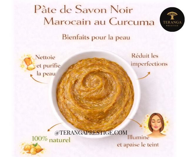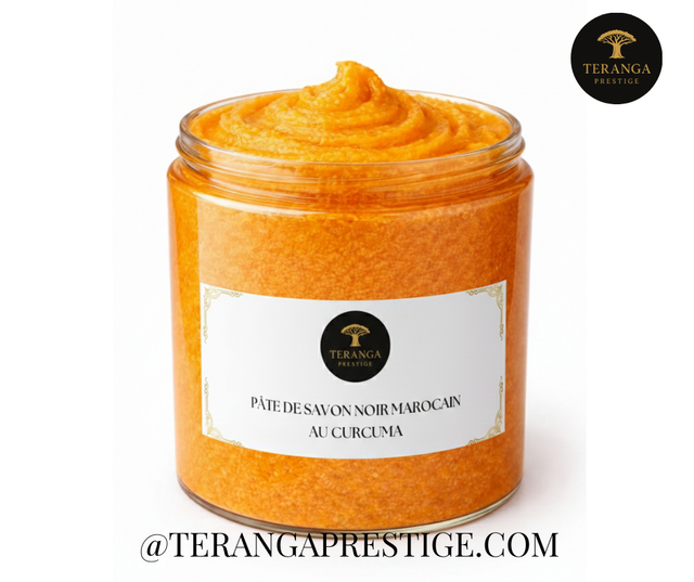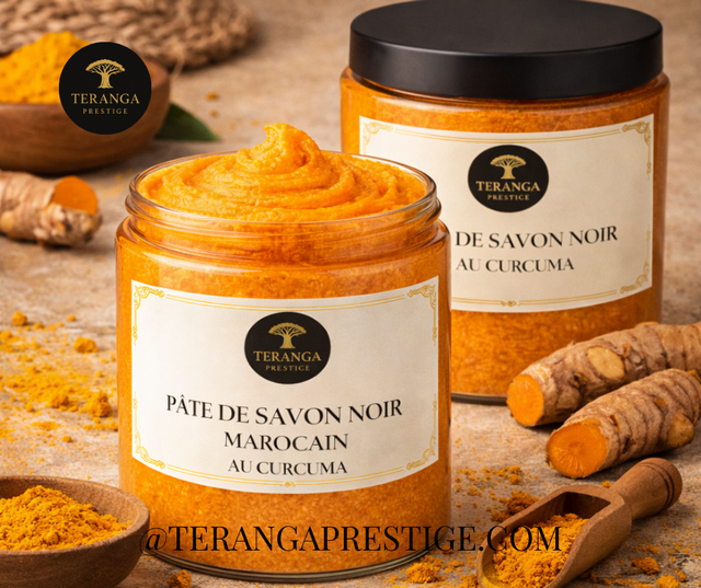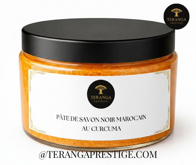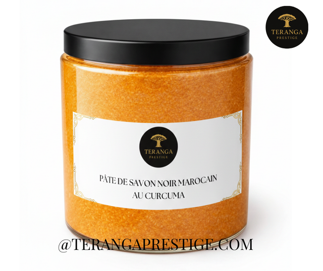 Chez Teranga Prestige, la pâte de savon noir marocain au curcuma est fabriqué traditionnellement, avec rigueur afin de garantir un produit authentique, sans additifs chimiques ni agents artificiels.